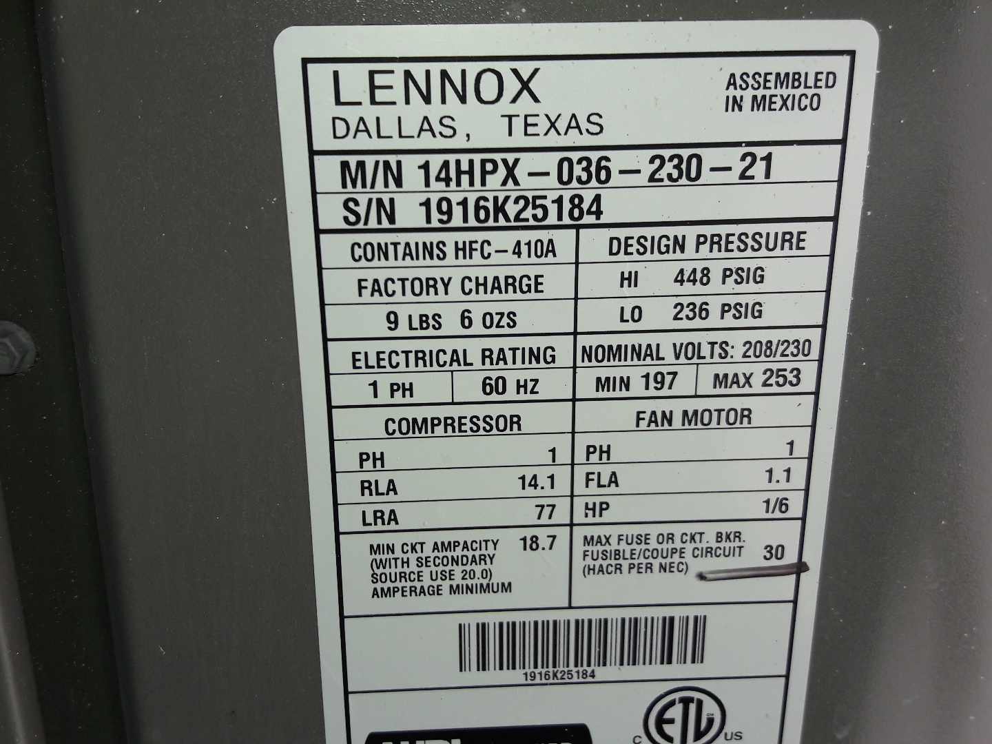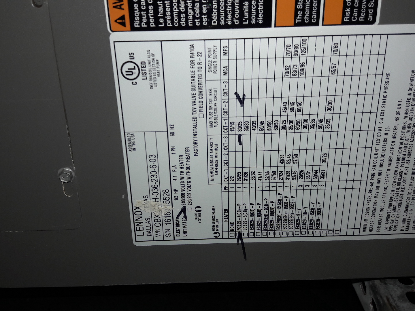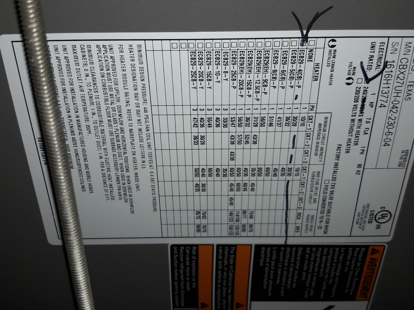 Air Handler 2 Label