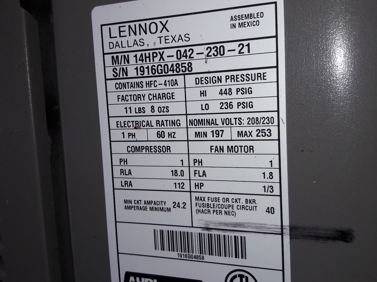 Air Handler Label